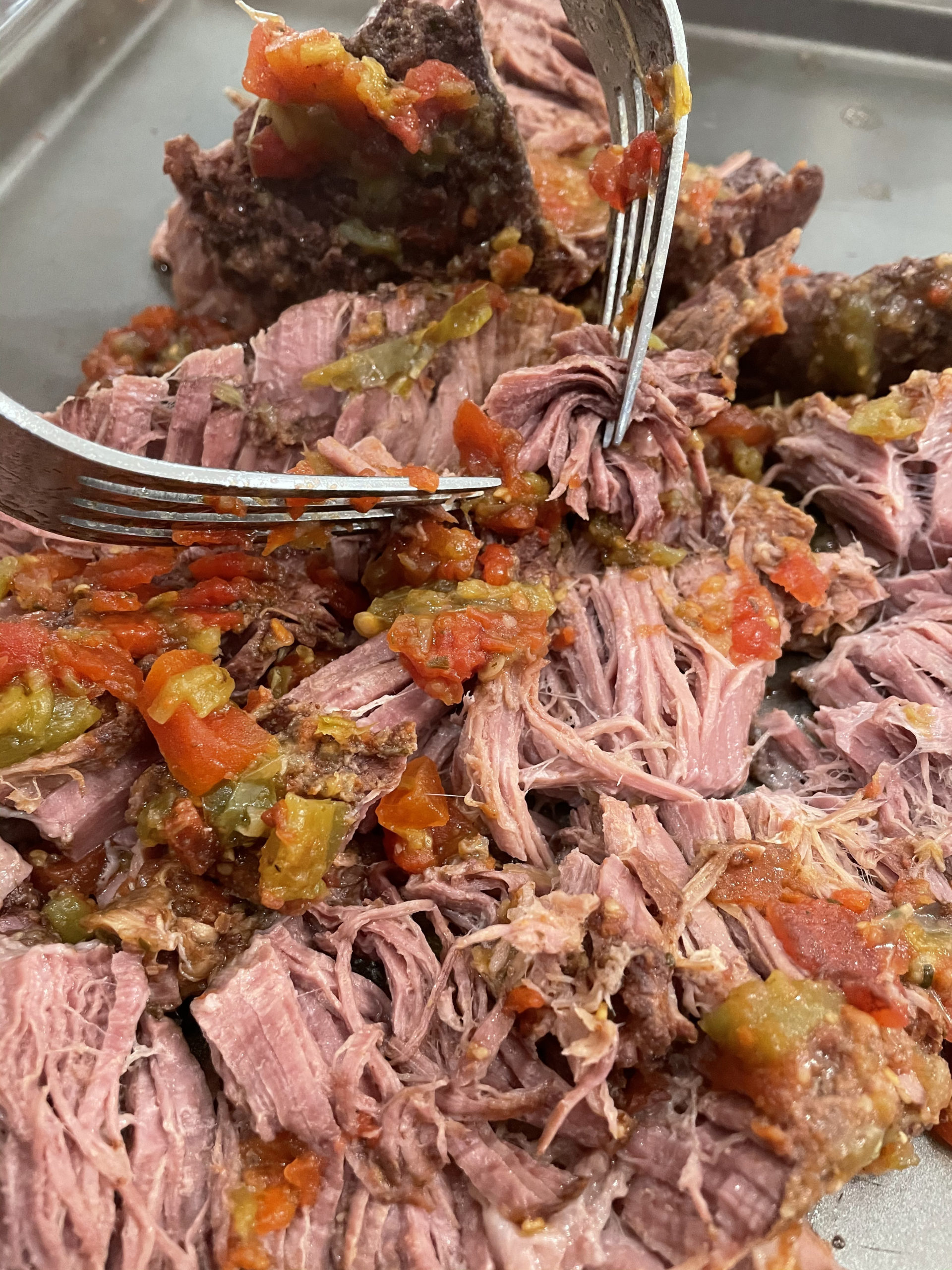 - 1 teXga roast (Sirloin tip, Chuck, Rump or London Broil. Pictured is Sirloin tip; Pork butt or shoulder would work too!)