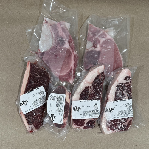 • 2 Large NY Strips (16–18 oz. each) — beautifully marbled with bold, classic steakhouse flavor