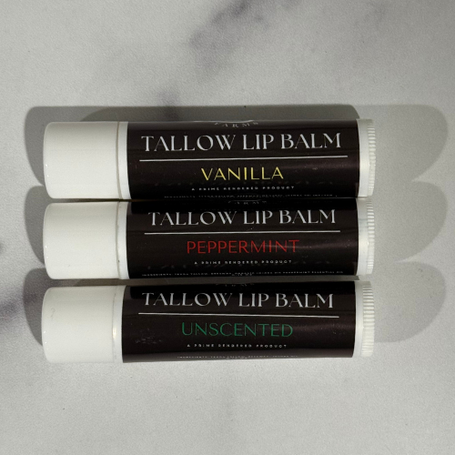 Crafted from our own pasture-raised beef tallow, rendered four times for unmatched purity, our lip balm is as natural as it gets. Blended with beeswax and organic jojoba oil, it locks in deep, lasting moisture without any fillers. Choose from refreshing peppermint with pure essential oil, smooth Madagascar vanilla bean caviar, or unscented for the simplest touch of nourishment OR bundle and save with a variety pack!